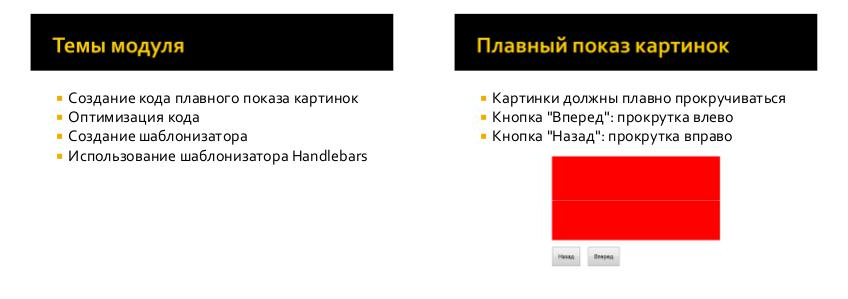 Картинки должны плавно прокручиваться Кнопка "Вперед": прокрутка влево Кнопка "Назад": прокрутка вправо
