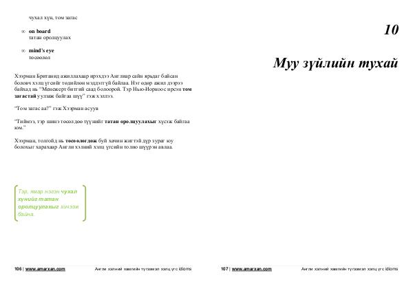 10 Муу зүйлийн тухай 107 | www.amarxan.com Англи хэлний хамгийн түгээмэл хэлц үгс idioms