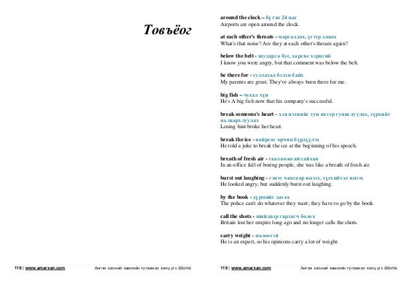 Англи хэлний хамгийн түгээмэл хэлц үгс idioms
