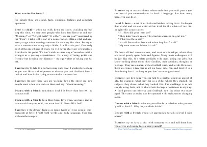 Exercise: try to create a drama where each time you walk past a person one of you communicates in level 1 language. See how many