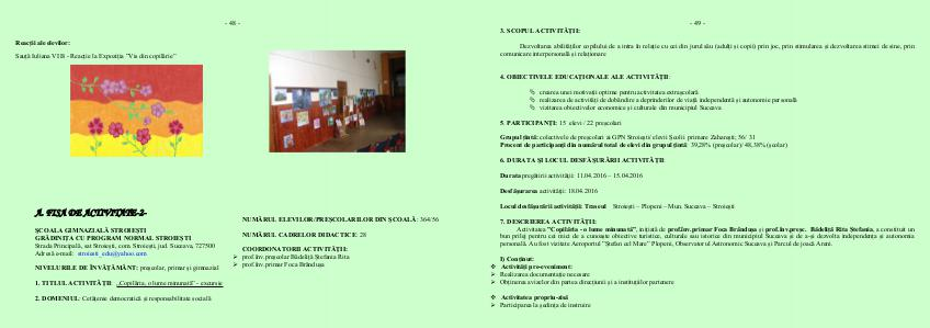 ŞCOALA GIMNAZIALĂ STROIEȘTI GRĂDINIȚA CU PROGRAM NORMAL STROIEȘTI Strada Principală, sat Stroiești, com. Stroiești, jud. Suceava, 727500 Adresă e-mail: stroiesti _ edu @ yahoo. com