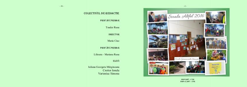 - 58 - COLECTIVUL DE REDACTIE Prof.inv.primar Toader Rusu Director Maria Ciuc prof.înv.primar Lilioara - Mariana Rusu ELEVI Iuliana Georgeta Mărgineanu Croitor Ionela Varteniuc Simona