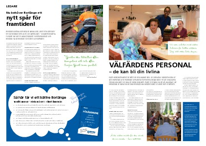 erbjuda våra äldre och sjuka en värdig livskvalitet, måste vi försäkra oss om att alla länkar i välfärdskedjan är starka nog att bära Borlänges alla vårdbehövande och äldre även i framtiden.