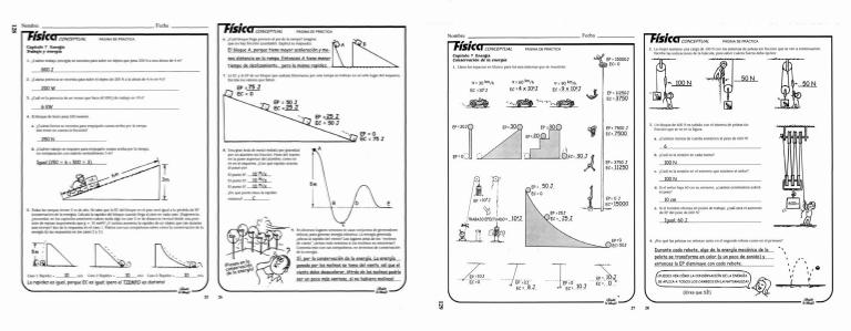 7. La EC y la EP de un bloque que resbala libremente por una rampa se indican en un solo lugar del esquema.