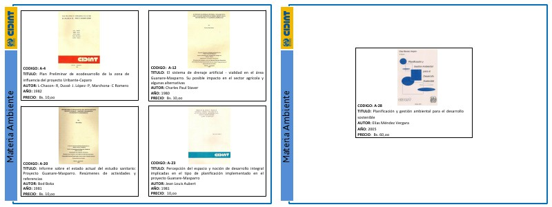 Materia Ambiente CODIGO: A-28 TITULO: Planificación y gestión ambiental para el desarrollo sostenible AUTOR: Elías Méndez Vergara AÑO: 2005 PRECIO: Bs. 60,oo