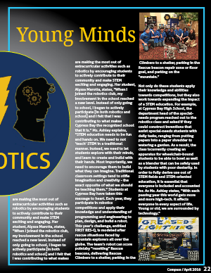 Not only do these students apply their knowledge and abilities towards competitions, but they also work towards expanding the impact of a STEM education. For example, at Cypress Bay High School, the department head of the special-needs program reached out to the robotics class and asked if they could construct inventions that assist special-needs students with daily tasks, ranging from putting papers into a paper shredder to watering a garden. As a result, the class is currently creating an apparatus for wheelchair-bound students to be able to bowl as well as a blender that can be safely used by students with poor dexterity. In order to fully derive use out of STEM fields and STEM-oriented education, it is essential that everyone is included and accounted for. As Ms. Ashley states, “With each passing year this world gets more and more high-tech. It affects everyone in every aspect of life. Young or old, we are surrounded by technology.”