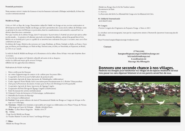 développement du festival Malaki ma Kongo, qui fait la promotion des racines de la culture de l’Afrique noire