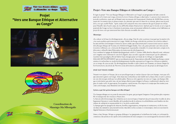 Projet «Vers une Banque Ethique et Alternative au Congo » de Malaki ma Kongo Coordination de Masengo Ma Mbongolo