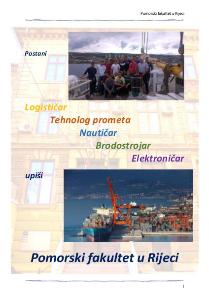 Pomorski fakultet u Rijeci Postani Logističar Tehnolog prometa Nautičar Brodostrojar Elektroničar upiši Pomorski fakultet u Rijeci 1