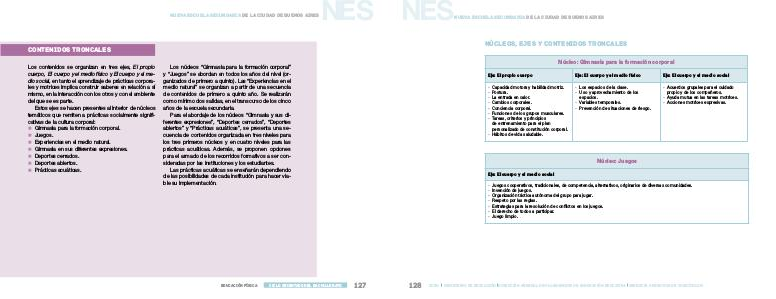 y “Juegos” se abordan en todos los años del nivel (organizados de primero a quinto). Las “Experiencias en el