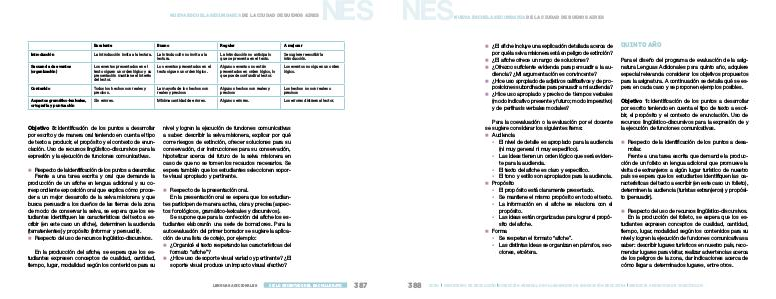 espera también que los estudiantes seleccionen soporte visual apropiado y pertinente.