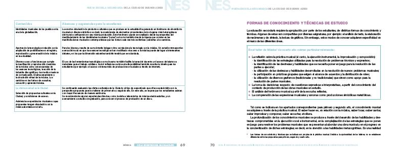 La profundización de los conocimientos musicales se produce a través del desarrollo de las habilidades y destrezas comprometidas en la ejecución vocal e instrumental, en la complejización de las estrategias que se ponen