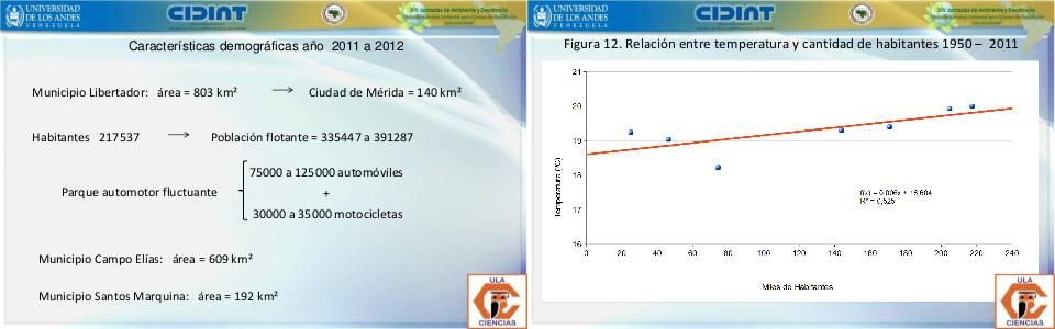 Figura 12. Relación entre temperatura y cantidad de habitantes 1950 – 2011