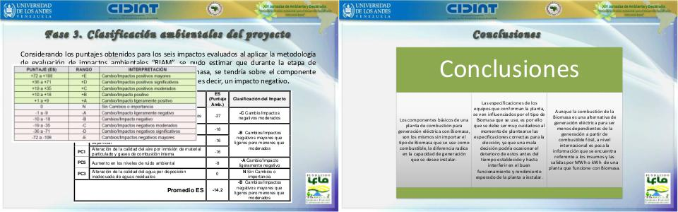 operación de la planta de generación eléctrica con biomasa, se tendría sobre el componente