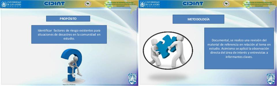 PROPÓSITO Identificar factores de riesgo existentes para situaciones de desastres en la comunidad en estudio. Título de la Ponencia
