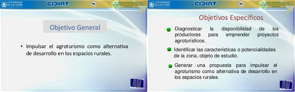 Objetivo General • Impulsar el agroturismo como alternativa de desarrollo en los espacios rurales.