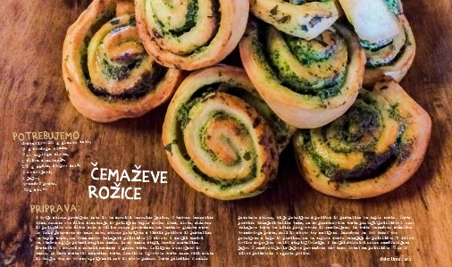 čemaževega pesta, soli in skute ter zavijemo. Narežemo na več kosov ter