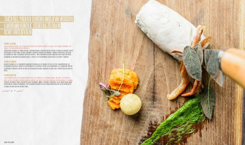Zajčji hrbet očistimo. Iz čistih obrezlin, zajčjega stegna, praženih bučnih semen, beljaka in smetane naredimo muslin, in sicer tako, da vse sestavine zmeljemo skupaj v mešalniku. Solimo in popramo, na koncu