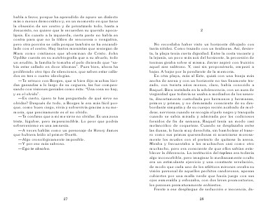 habla a favor, porque ha aprendido de apuro un dialecto más o menos democrático y, en un momento en que tiene la obsesión de ser centro y de privatizarlo todo, hasta a Jesucristo, no quiere que le recuerden su querido apocalipsis. En cuanto a la izquierda, cierta parte no habla en contra para que no la tilden de rencorosa o vengativa, pero otra porción se calla porque también se ha encandilado con el centro. Hay tantos marxistas que reniegan de Marx como cristianos que abominan de Cristo. John Updike cuenta en su autobiografía que a su abuelo, todo un erudito, la familia le tomaba el pelo diciendo que ?sabía estar callado en doce idiomas?. Pues bien, ahora ha proliferado otro tipo de silenciosos, que saben estar callados en tres o cuatro ideologías. ?Te retruco con Borges, que si bien dijo muchas lúcidas gansadas a lo largo de su ceguera, las fue compensando con visiones geniales como ésta: ?Una cosa no hay, y es el olvido?. ?Es cierto, ¿pero te has preguntado de qué sirve no olvidar? Después de todo, a Borges le era más fácil porque, como buen ciego, vivía y sobrevivía gracias a su memoria, que precisamente es el no olvido. ?Te confieso que a mí me sirve no olvidar. Es una zona triste, lúgubre, pero imprescindible. Lo peor que podría sobrevenirme es una amnesia. ?A veces hablás como un personaje de Henry James que hubiera leído al primer Onetti. ?Algo cronológicamente imposible. ?Y por eso más sabroso. ?Ego te absolvo.