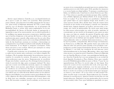 ne pero sí en computadora propia) que ya no existen franquistas puros en este lindo país. Sólo quedan los impuros y a veces hasta son best sellers. Y siempre constitucionalistas, no faltaba más. Cambiaron a José Antonio por Azaña. Y los otros no pueden protestar porque ellos cambiaron a Pablo Iglesias por Helmut Kohl. A lo mejor hiciste bien en volver. Y yo hice mejor en quedarme. ¿Sabés lo que pasa? Que en unos lugares tengo más miedo y en otros menos miedo. Pero desde hace más de veinte años el miedo se me metió en la sangre y cuando veo (siempre desde lejos, lagarto lagarto) un milico, así sea suizo o noruego, me viene la taquicardia. Es cierto que aquí tengo la vida mejor solucionada (no sólo el miedo, también el consumismo se me metió en la sangre) y eso, para un ama de casa con hija en estado de gracia (Camila está cada día más linda) no es poca cosa. La galería me lleva su tiempo pero es un trabajo que me gusta. Cada vez me voy especializando más en artistas latinoamericanos, y, dentro de lo posible, compatriotas. Ahora tengo un Gamarra, un Frasconi y un Barcala. Me gustan tanto que todos los días les subo los precios para asustar a los posibles compradores y poder seguir teniéndolos frente a mí. Si tuviera un Botero o un Lam los vendería de mil amores, pero infortunadamente no los tengo. Me gustan, claro, pero para otros muros, no para los míos. Gamarra, Frasconi y Barcala son mi familia; Botero y Lam, una prestigiosa familia ajena. Anoche Camila fue con sus amiguetes a un recital de José Agustín Goytisolo y Paco Ibáñez. Dice que cuando escuchó Palabras para Julia se puso a llorar. Y que la voz aguardentosa del Paco le movió algo en las tripas. Eso nunca le ocurre en los conciertos de rock, a los que también asiste pero regresa indemne, con los ojos secos. A esta altura de este siglo carcamal, ya no sé si es saludable llorar o meter el corazón en las brasas hasta que amanezca reseco y sin futuro. ¿Y a vos cómo te está yendo? Podrías escribir más a menudo. Especialmente por Camila. Aunque te escriba poco, igual se siente incómoda con tus largos silencios. También a mí me gusta saber de tu nueva (o renovada) vida. Creo que habíamos quedado en que,