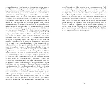nen. Todavía me falta mucho para proclamarme un PhD de la granujada clásica, simplemente me juzgo un humilde artesano de la triquiñuela. En todo caso, me considero un tipo leal, aunque eso sí, más a los medios que a los fines. Nunca jodí a nadie. A veces me conmuevo al repasar mis virtudes completas. Por otra parte, y para que aquilates hasta dónde ha llegado mi cambio, te d iré que ahora soy católico, apostólico y romano. El Papa Wojtyla es mi líder. Seráfico, intolerante y un poquito bandido, pero él besa el suelo y yo beso a las minas, la diferencia es notoria y a mi favor. Tú sacerdote, yo sacrílego, dijo el jefe piel roja antes de recibir la comunión. Y Buffalo Bill no pudo aguantar la risa. Yo tampoco.