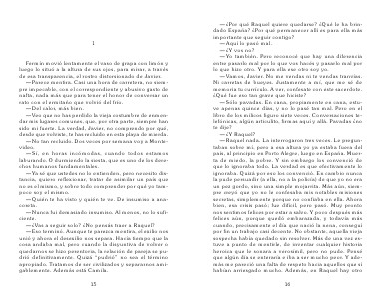 ?¿Por qué Raquel quiere quedarse? ¿Qué le ha brindado España? ¿Por qué permanecer allí es para ella más importante que seguir contigo? ?Aquí lo pasó mal. ?¿Y vos no? ?Yo también. Pero reconocé que hay una diferencia entre pasarlo mal por lo que vos hacés y pasarlo mal por lo que hizo otro. Y para ella ese otro soy yo. ?Vamos, Javier. No me vendas ni te vendas tranvías. Ni carretas de bueyes. Justamente a mí, que me sé de memoria tu currículo. A ver, confesate con este sacerdote. ¿Qué fue eso tan grave que hiciste? ?Sólo pavadas. En cana, propiamente en cana, estuve apenas quince días, y no lo pasé tan mal. Pero en el libro de los milicos figuro siete veces. Conversaciones telefónicas, algún articulito, firmas aquí y allá. Pavadas ¿no te dije? ?¿Y Raquel? ?Raquel nada. La interrogaron tres veces. Le preguntaban sobre mí, pero a esa altura yo ya estaba fuera del país, al principio en Porto Alegre, luego en España. Muerta de miedo, la pobre. Y sin embargo los convenció de que lo ignoraba todo. La verdad es que efectivamente lo ignoraba. Quizá por eso los convenció. En cambio nunca la pude persuadir (a ella, no a la policía) de que yo no era un pez gordo, sino una simple mojarrita. Más aún, siempre creyó que yo no le confesaba mis notables misiones secretas, simplemente porque no confiaba en ella. Ahora bien, esa crisis pasó; fue difícil, pero pasó. Muy pronto nos sentimos felices por estar a salvo. Y poco después más felices aún, porque quedó embarazada, y todavía más cuando, precisamente el día que nació la nena, conseguí por fin un trabajo casi decente. No obstante, aquella vieja sospecha había quedado sin resolver. Más de una vez estuve a punto de mentirle, de inventar cualquier historia heroica que le sonara a verosímil, pero no pude. Pensé que algún día se enteraría e iba a ser mucho peor. Y además me pareció una falta de respeto hacia aquellos que sí habían arriesgado mucho. Además, en Raquel hay otro