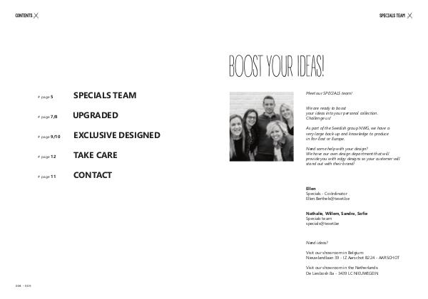 # page 5 # page 7/8 004 - 005 SPECIALS TEAM UPGRADED # page 9/10 EXCLUSIVE DESIGNED # page 12 TAKE CARE # page 11 CONTACT