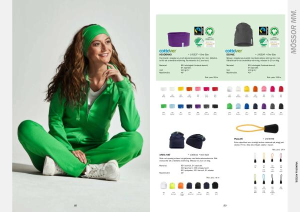 95 % bomull , 5 % spandex 329 gul / svart , 339 orange / svart : 62 % polyester , 33 % bomull , 5 % elastan