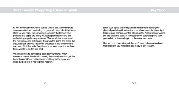 to win their business when it comes time to sell . A solid nurture communication and marketing program will do much of the heavy lifting for you here . The conversion comes in the form of your physical and digital pre-listing kit , listing presentation and the entire listing experience you deliver . There ’ s a lot at stake so all the more reason to get it right . If you win the listing and make the sale , chances are you ’ ll list other properties in the area from the success of this first sale . So think of your fee-for-service as three times what it is on the first deal .
