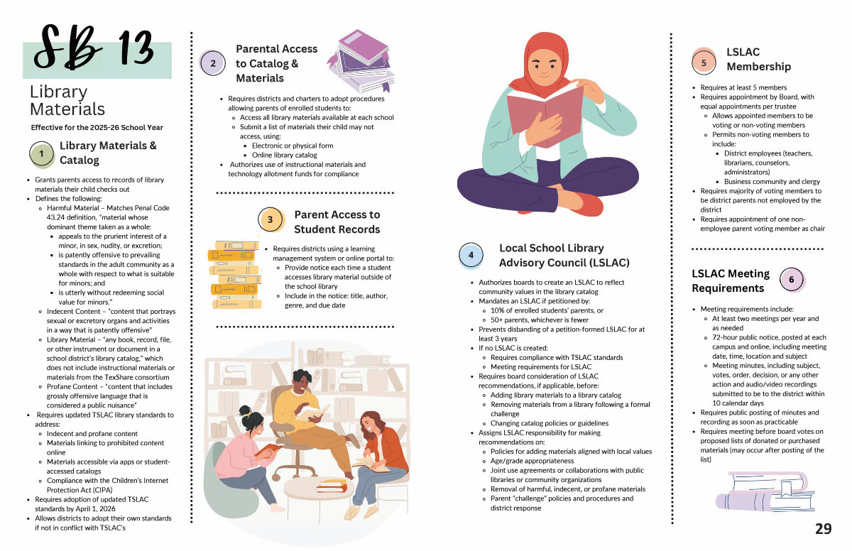 • Authorizes boards to create an LSLAC to reflect community values in the library catalog