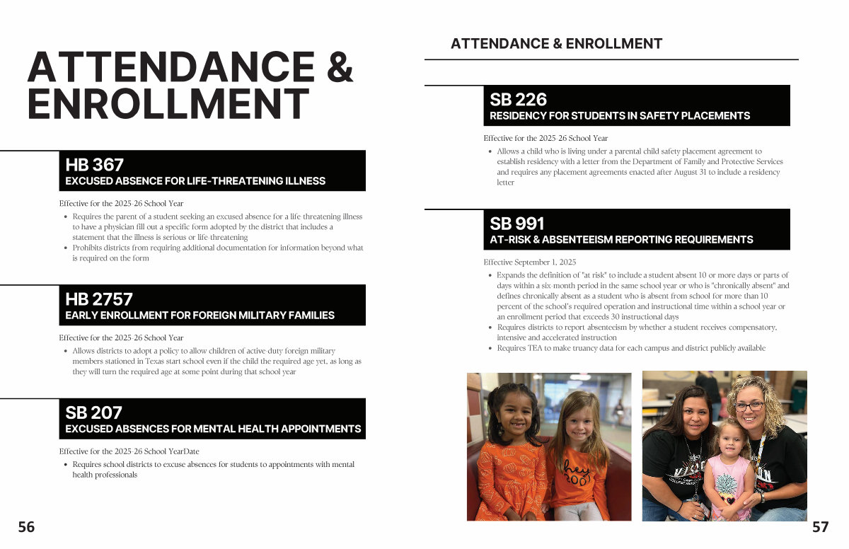 • Allows districts to adopt a policy to allow children of active-duty foreign military members stationed in Texas start school even if the child the required age yet, as long as they will turn the required age at some point during that school year
