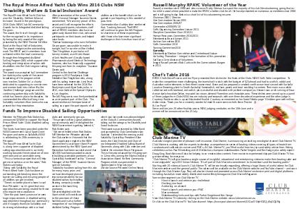 The Royal Prince Alfred Yacht Club Wins 2016 Clubs NSW