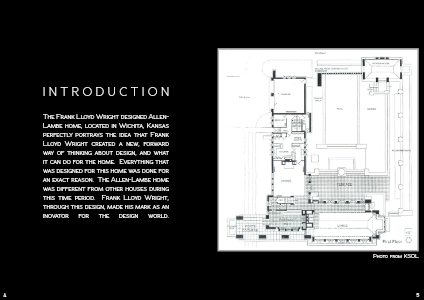 The Frank Lloyd Wright designed Allen-Lambe home, located in Wichita, Kansas perfectly portrays the idea that Frank Lloyd Wright created a new, forward way of thinking about design, and what it can do for the home. Everything that was designed for this home was done for an exact reason. The Allen-Lambe home was different from other houses during this time period. Frank Lloyd Wright, through this design, made his mark as an inovator for the design world.