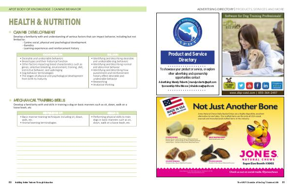 APDT BODY OF KNOWLEDGE | CANINE BEHAVIOR HEALTH & NUTRITION 60 Building Better Trainers Through Education