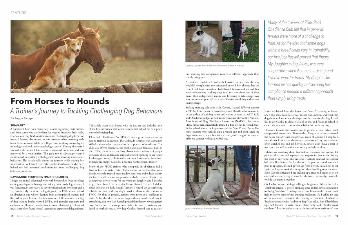 Photos: Peggy Swager The APDT Chronicle of the Dog | Summer 2025 19