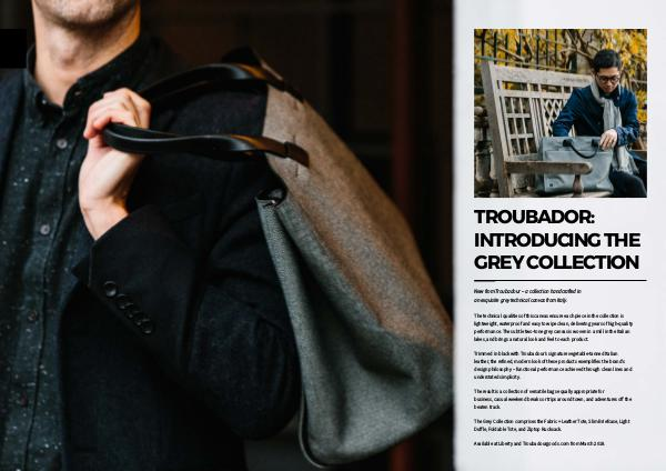 The Grey Collection comprises the Fabric + Leather Tote, Slim Briefcase, Light