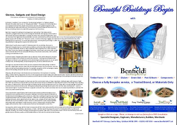 the RIBA and chairs leading UK timber engineers Benfield ATT. Based in Caldicot, Monmouthshire, they are a ‘full service’ timber Design and Build group using 3D