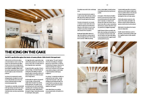 combine simple, white marble-type surfaces As he explains, “What I like about Neolith is with exposed stone walls and unvarnished that it is non-porous and very easy to clean, wooden flooring throughout the property. an essential requirement for precise pastry Grolet’s philosophy also extends to other