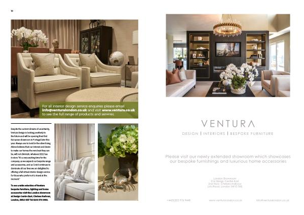 Despite the current climate of uncertainty , Ventura Design is looking positively to the future and will be opening their first European showroom in Portugal later this year . Always one to look for the silver lining , Arlene believes that our interest and desire to make our homes the very best they can be , will not diminish , whatever 2021 has in store “ It ’ s a very exciting time for the company , as we expand our bespoke range and accessories , and as Covid continues to dominate all our lives we are delighted to offering a full virtual interior design service for those who prefer not to travel at the moment .”