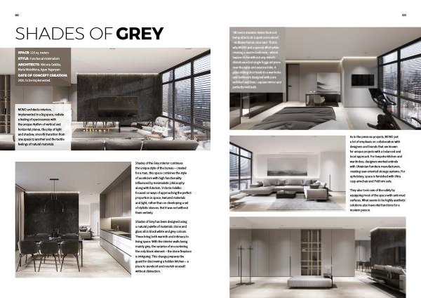 Shades of the Grey interior continues the unique style of the bureau – created for a man , this space combines the style of asceticism with high functionality . Influenced by minimalistic philosophy along with futurism , Victoria Oskilko focused on ways of approaching the perfect proportion in space , textured materials and light , rather than on developing a set of stylistic stances . But it was not without them entirely .