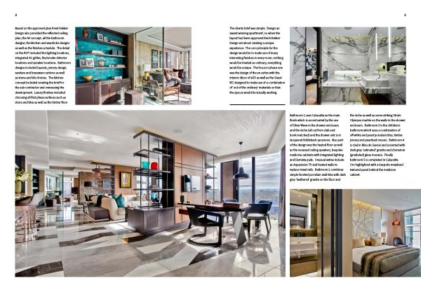 Based on the approved plan René Dekker Design also provided the reflected ceiling plan , the AV concept , all the bathroom designs , the kitchen and wardrobe designs as well as the finishes schedule . The detail on the RCP included the lighting locations , integrated AC grilles , fire / smoke detector locations and speaker locations . Bathroom designs included layouts , joinery design , sanitary and brassware options as well as stone and tile choices . The kitchen concept included creating the brief for the sub-contractor and overseeing the development . Luxury finishes included choosing all first phase surfaces such as stone and tiles as well as the timber floor .