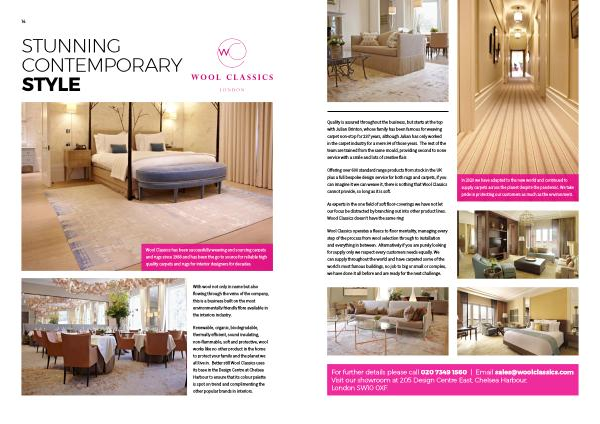Renewable , organic , biodegradable , thermally efficient , sound insulating , non-flammable , soft and protective , wool works like no other product in the home to protect your family and the planet we all live in . Better still Wool Classics uses its base in the Design Centre at Chelsea Harbour to ensure that its colour palette is spot on trend and complimenting the other popular brands in interiors .