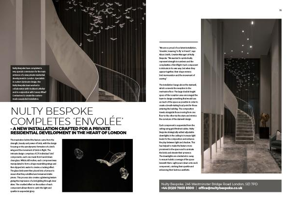 “ We are so proud of our latest installation , ‘ Envolée ’, meaning ‘ to fly ’ in French ”, says Alison Smith , Creative Manager at Nulty Bespoke . “ We wanted to symbolically represent strength in numbers and the complexities of bird flight . Each component is intricate in its own way , but when they appear together , their shape mimics bird murmuration and the movement of soaring .”