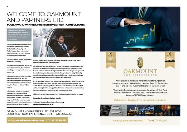 At Oakmount and Partners , we ’ re renowned for our premier investment acumen and unrivalled customer focus . So , for first-class service and superior investment returns call our team today !