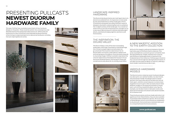 This year , PullCast has unveiled an assortment of new hardware designs to the public . These novelties exhibit the contemporary and detailed essence that the brand is best known for . While some are extensions to a few of PullCast ’ s most beloved hardware families , others bring an original perspective to decorative hardware , including the awe-inspiring Duorum series .