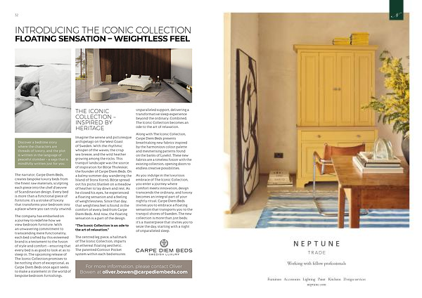 The company has embarked on a journey to redefine how we view bedroom furniture . With an unwavering commitment to transcending mere functionality , each bed crafted by this esteemed brand is a testament to the fusion of style and comfort – ensuring that every bed is as good to look at as to sleep in . The upcoming release of The Iconic Collection promises to be nothing short of exceptional , as Carpe Diem Beds once again seeks to make a statement in the world of bespoke bedroom furnishings .