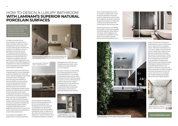 Laminam porcelain is incredibly sustainable , containing up to 60 % recycled materials , while 100 % of the water used is fed back into its production and 95 % of its raw waste is recovered . Laminam also pursues sustainability in all