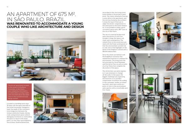 According to this , the living room / home theater is the project ’ s main point . The clients dreamed of having a wine cellar in the apartment , and the solution found by the architect to keep the layout fluid was to adapt the drinks ’ compartment to the same place as the home theater . So , it was possible to keep a good circulation space and a 360 ° view of the city of São Paulo .
