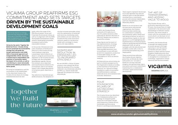 The Vicaima Group ’ s 2022 Sustainability Report is available to view in full at www . vicaima . com / en-gb / sustainability # inicio