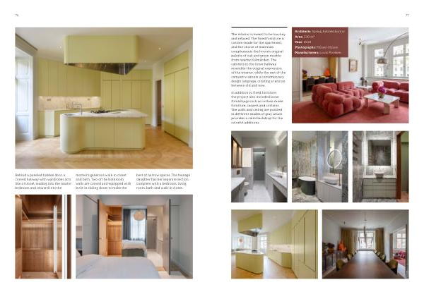Behind a paneled hidden door , a curved hallway with wardrobes acts like a tunnel , leading into the master bedroom and onward into the mother ’ s generous walk-in closet and bath . Two of the bathroom walls are curved and equipped with built-in sliding doors to make the best of narrow spaces . The teenage daughter has her separate section , complete with a bedroom , living room , bath and walk-in closet .